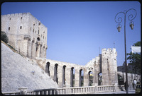 Bridge between the Citadel of Aleppo outer and inner entrance, with one of the citadel towers in the middle