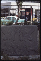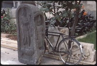 Stele with relief next to bicycle in Aleppo Museum