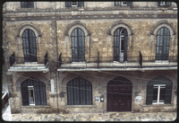 Facade of a historical building with mashrabiya at Al-Jdayde quarter of Aleppo