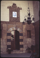 Entrance door to Beit Ghazaleh and Al Amjaad Private School in Al-Jdayde quarter of Aleppo
