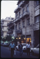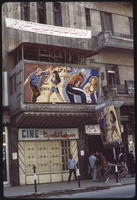 Ramita Cinema in Aleppo (previously known as Al - Ahram Cinema) with "The Seven Women from Heaven" movie poster.