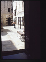 Boy playing basketball at Beit Ghazaleh courtyard, Al-Jdayde quarter of Aleppo