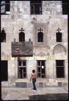 Man sitting on a fountain of Beit Ajqabash at Al-Jdayde quarter of Aleppo
