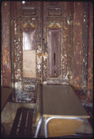 Center door of Beit Ajqabash iwan with Hafez al-Assad Poster in Al-Jdayde quarter of Aleppo