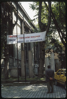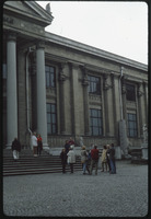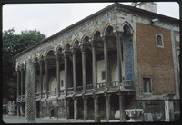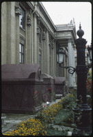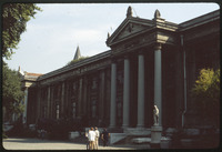 View of museum facade and Byzantine sarcophagi