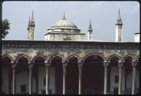 Exterior of Tiled Kiosk Museum with minarets in background