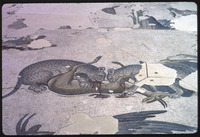 Detail of mosaic depicting cheetahs eating a deer