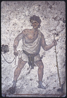 Detail of a mosaic featuring a man fighting a cheetah