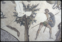 Detail of a mosaic depicting a hunter and tree
