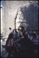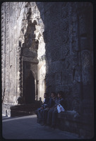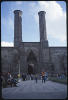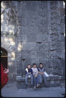 Children sitting in front of decorated wall of Yakutiye Madrasa