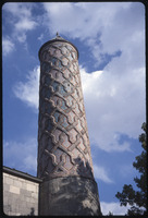 Detail of ornamentation on south iwan archway in Twin Minaret Madrasa