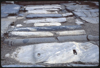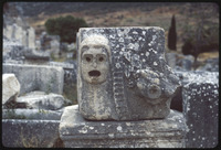 Ruins of round structure in Domitian Square and relief of Flying Nike