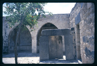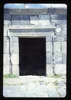 Doorway of one of the vaulted shops west of the basilical terrace in Umm Qais