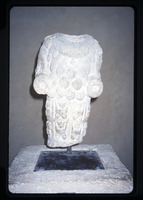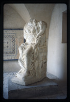 The seated goddess Tyche and mosaic panel exhibited at Beit al-Rousan (The Archaeological Museum) in Umm Qais