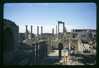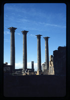 Basalt columns with Cornthian capitals from Octagonal Church in Umm Qais site