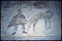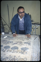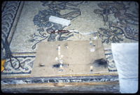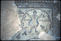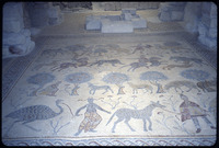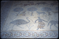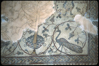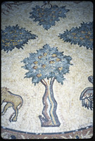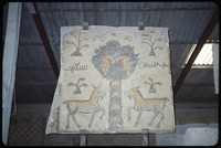 Mosaic floor, depicting two deer or goats and pair of doves facing a palm tree with dates