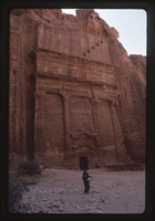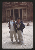 Valerie Hane and tour guide from front of the Al Khazneh (Treasury) in Petra