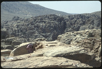 A child sleeping in a hollow rock in a high place for Sacrifice in Petra