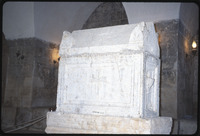 [most probably Nadim Khalil] in front of Roman sarcophagus