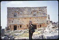 Barbara A. Porter in front of villa ruins in Serjilla