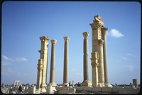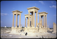 Tetrapylon with colonnades and Tadmur Castle (Palmyra Palace)