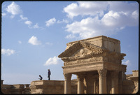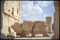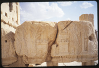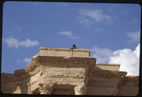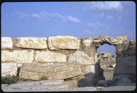 colonnades and Truimphal Arch through entryway with ruin of relief