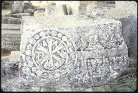 Detail of engraving in pilgrim area of Church of Saint Simeon Stylites