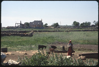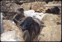 Person with goats in front of ruins