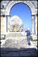 Unidentified man touching Saint Simeon's column