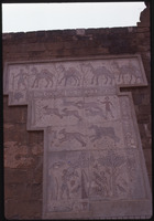 Roman mosaic depicting caravan, hunting scene, and agriculture