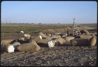 Harvested cotton in sacks in Qal'at al-Rahba area