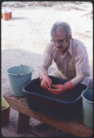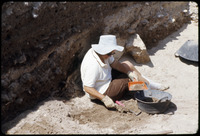 Caesarea 1974 excavation - Taking down a Munsell Reading