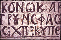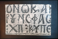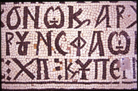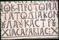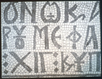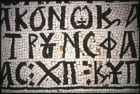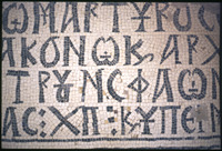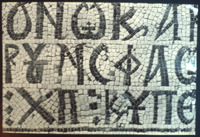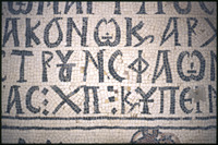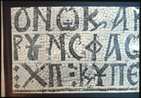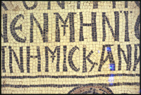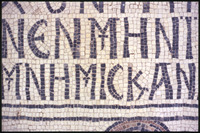 Umm al-Rasas - Detail of Greek inscription in mosaic in Church of St. Stephen