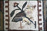 Umm er-Rasas - Church of St. Stephen - damaged mosaic of bird and plant