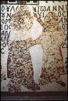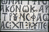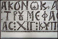 Umm al-Rasas - Detail of Greek inscription in mosaic in Church of St. Stephen