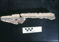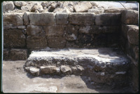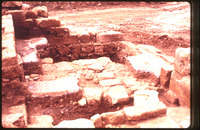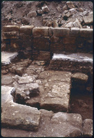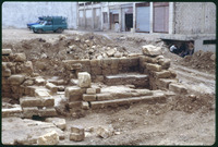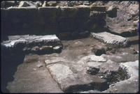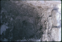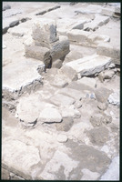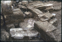 Excavation of the lower church in Qweismeh, 1989 - broken fragments of limestone panel