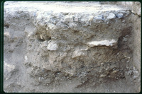 Excavation of the lower church in el-Quweisma - view to the east of balk section in southeast corner of the southeast room