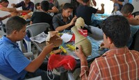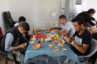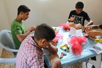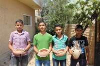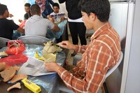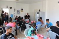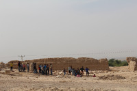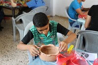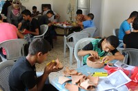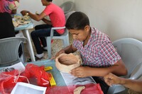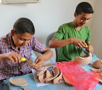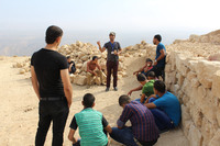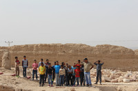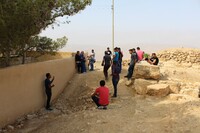 Jordan. Busayra, school group archaeological site visit and pottery activity