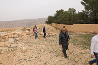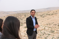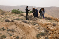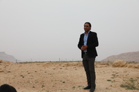 Jordan. At-Tafilah, archaeological site of Busayra, the administrative and political capital of the kingdom of Edom, site steward Ali Al Soide addresses SCHEP team members