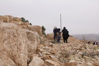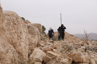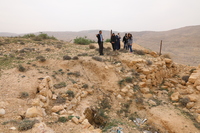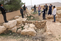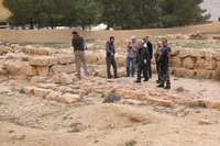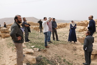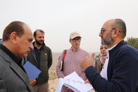 Jordan. At-Tafilah, archaeological site of Busayra, the administrative and political capital of the kingdom of Edom, Director of the Department of Antiquities Tafileh Directorate Emad Al-Thros, Jack Green of ACOR, and USAID SCHEP team members