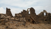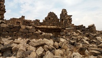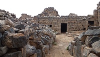 Jordan. Umm al Jimal, house north of House XV, photo illustrates the construction technique of corbelling using basalt stones