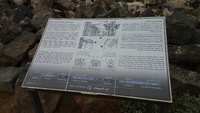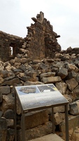 Jordan. Umm al Jimal, sign about basalt construction techniques