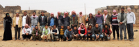 Jordan. Umm al Jimal, project team in front of Commodus Gate