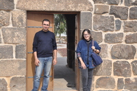 Jordan. Umm al Jimal, Barbara Porter of ACOR and Nizar Al Adarbeh of USAID SCHEP in front of Interpretive and Hospitality Center