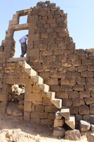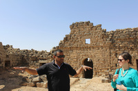 Jordan. Umm al Jimal, House XVIII, pictured: steward Muaffaq al-Masaeed and Maria Trogolo