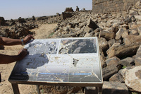 Jordan. Umm al Jimal, sign for House XVIII's Facade and Reservoir