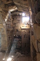 Jordan. Umm al Jimal, great room of House XIII, bathroom in corner