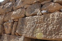 Jordan. Umm al Jimal, interpretive sign describing basalt construction techniques