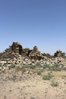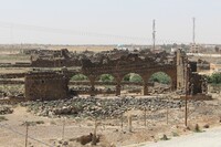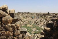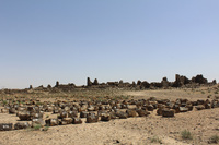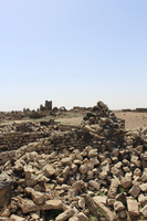 Jordan. Umm al Jimal, preparation for restoration, numbering stones, architectural fragments from Commodus Gate