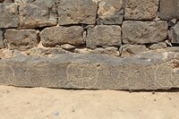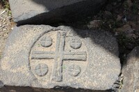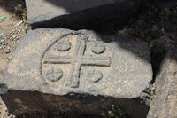 Jordan. Umm al Jimal, cross on basalt from collapsed arches in the West Church